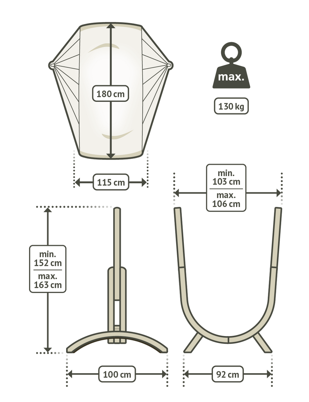Use these handy hammock dimensions and minimum space requirements to check you have enough space for your Udine chair hammock stand and hammock.