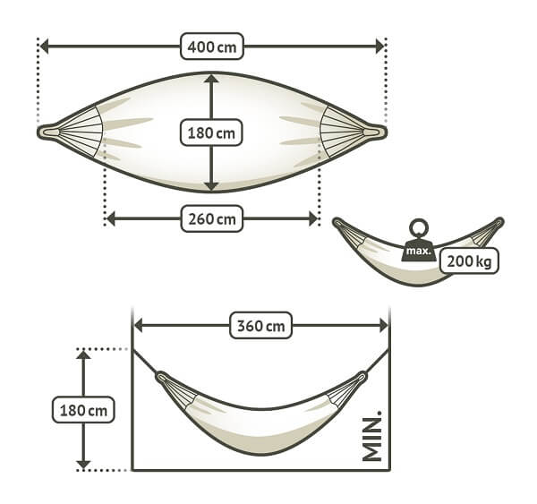 Use these handy hammock dimensions and minimum space requirements to check you have enough space to hang a hammock. Have more space? No problem, add tree ropes or a hanging kit and you can span longer distances.